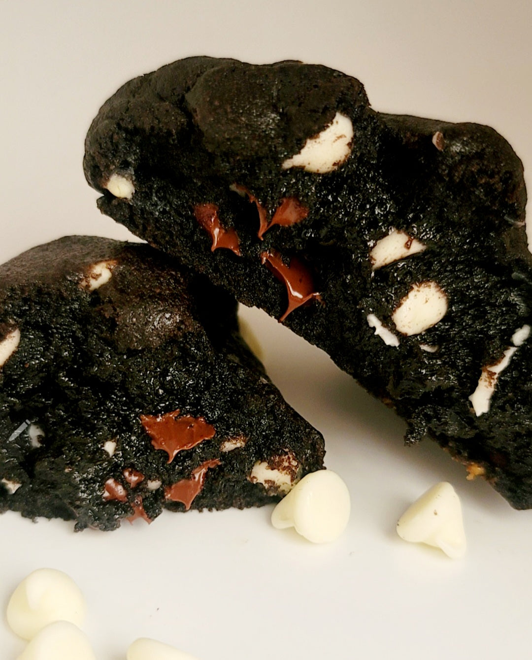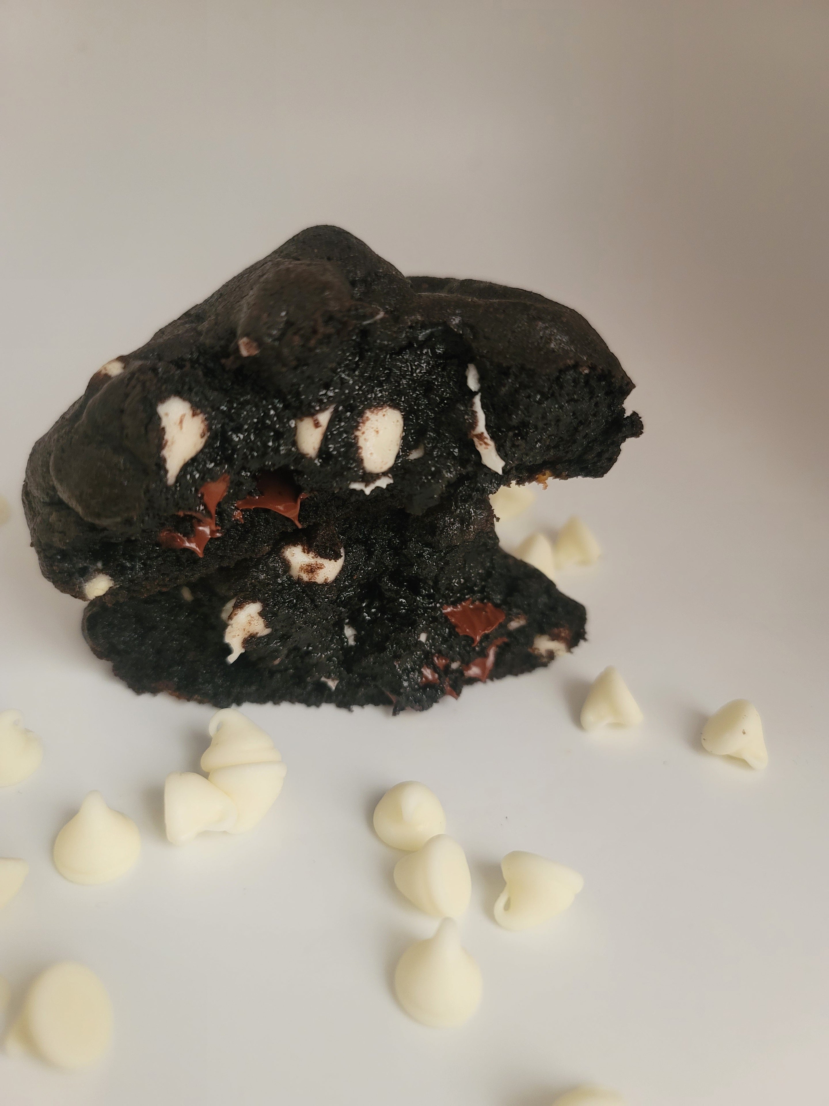 It's a specialty black cocoa powder with a unique chocolate flavor. Filled with bittersweet and white chocolate chips.